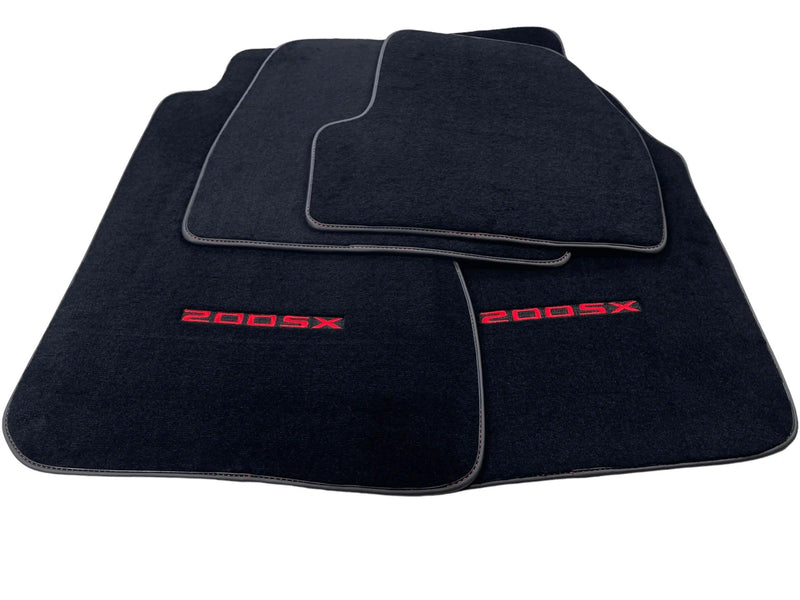 سجاد سيارات أسود لنيسان 200 SX (1989-1994) مع شعار أحمر