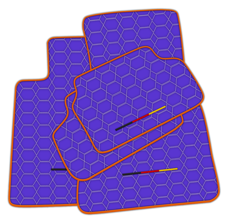قم بترقية داخل سيارتك مع حصائر سيارات جلدية زهرية لسيارة بي إم دبليو. مصنوعة من جلد عالي الجودة، تحتوي هذه الحصائر على نمط سداسي أنيق مع تطريز باللون الأبيض وحدود لافتة باللون البرتقالي. أظهر فخرك الألماني مع العلم الألماني المرفق. قم بتحسين تجربة قيادتك اليوم.