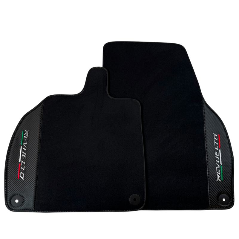 Tapis de sol noirs en cuir et fibre de carbone pour Lamborghini Revuelto (2024-2025)