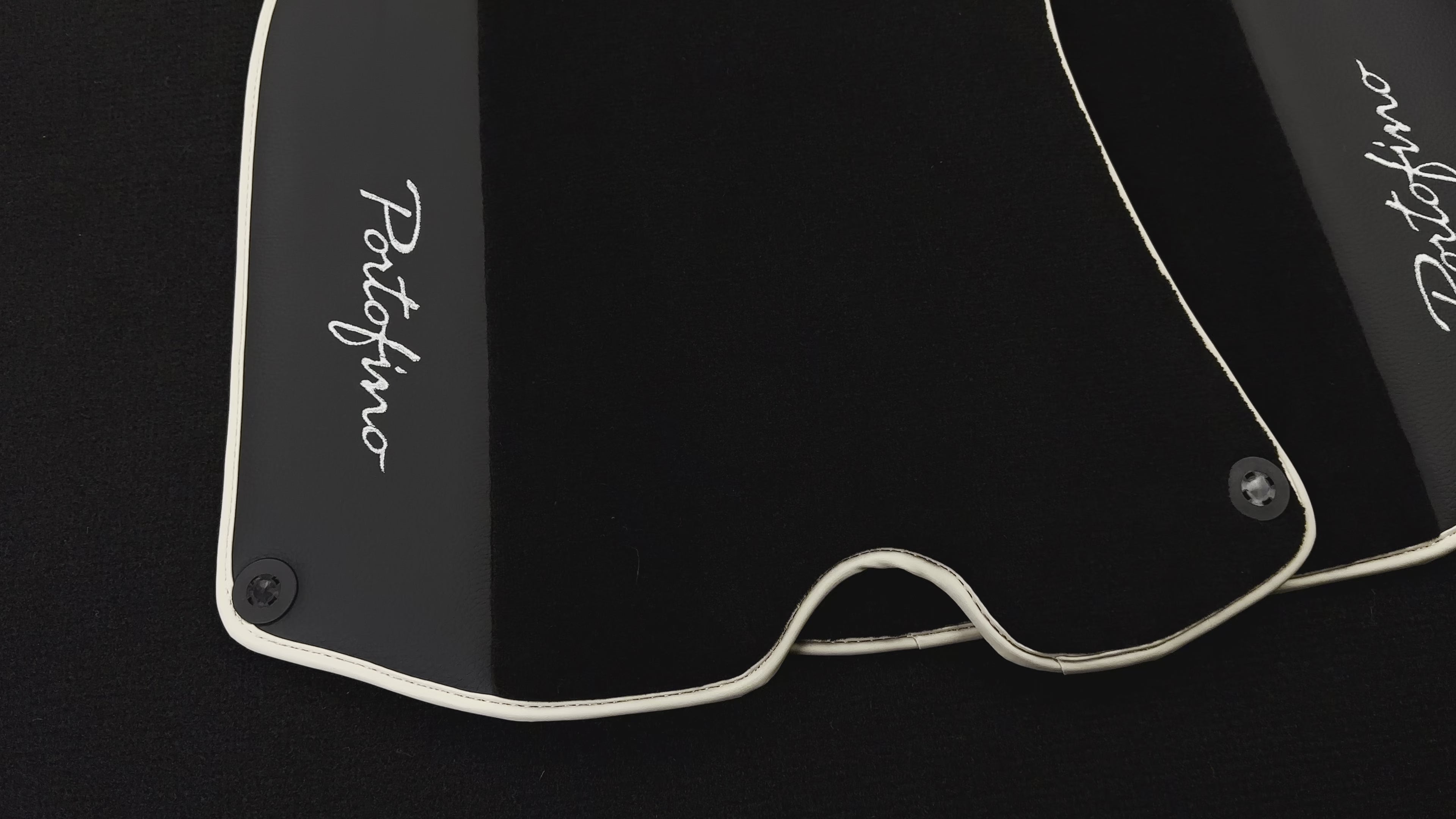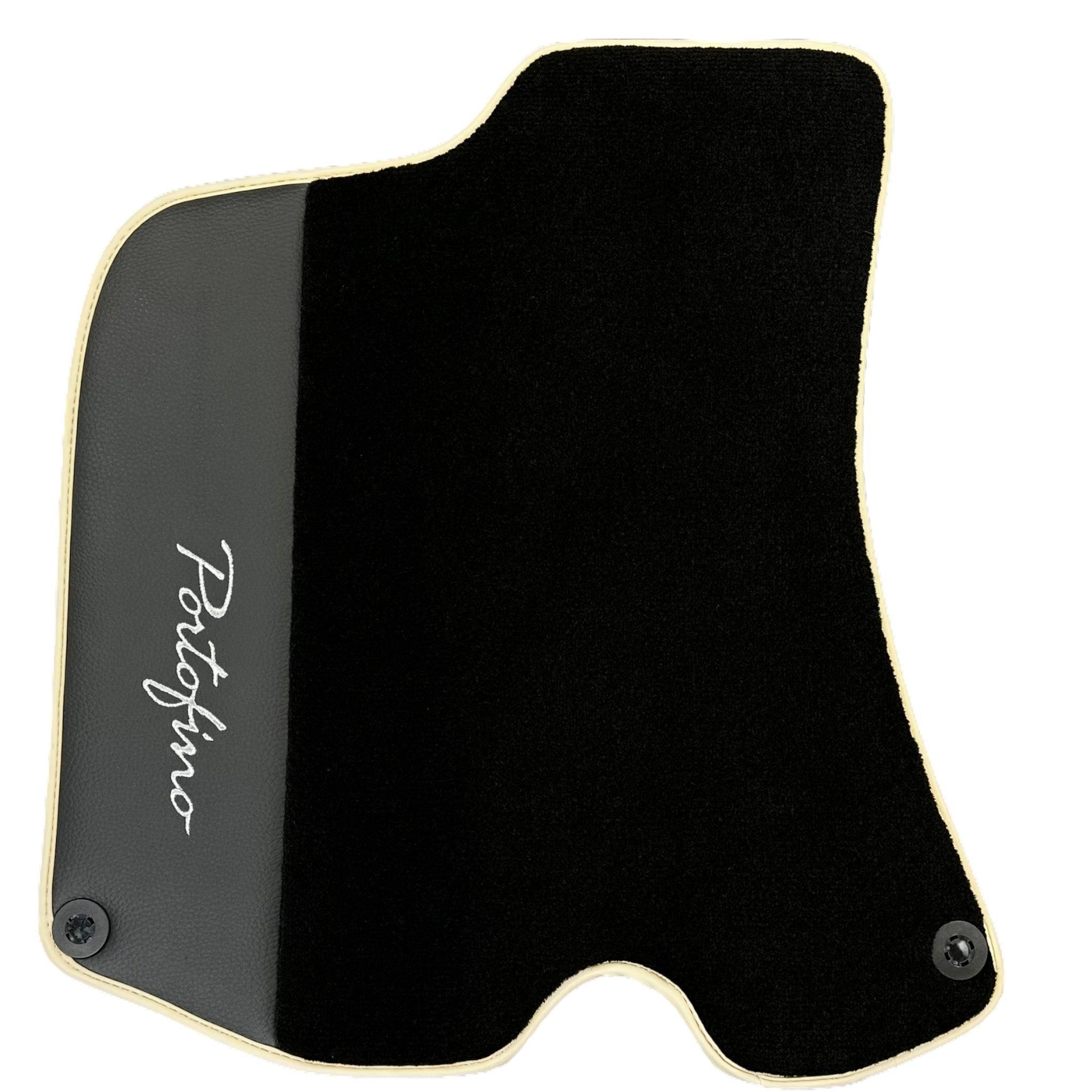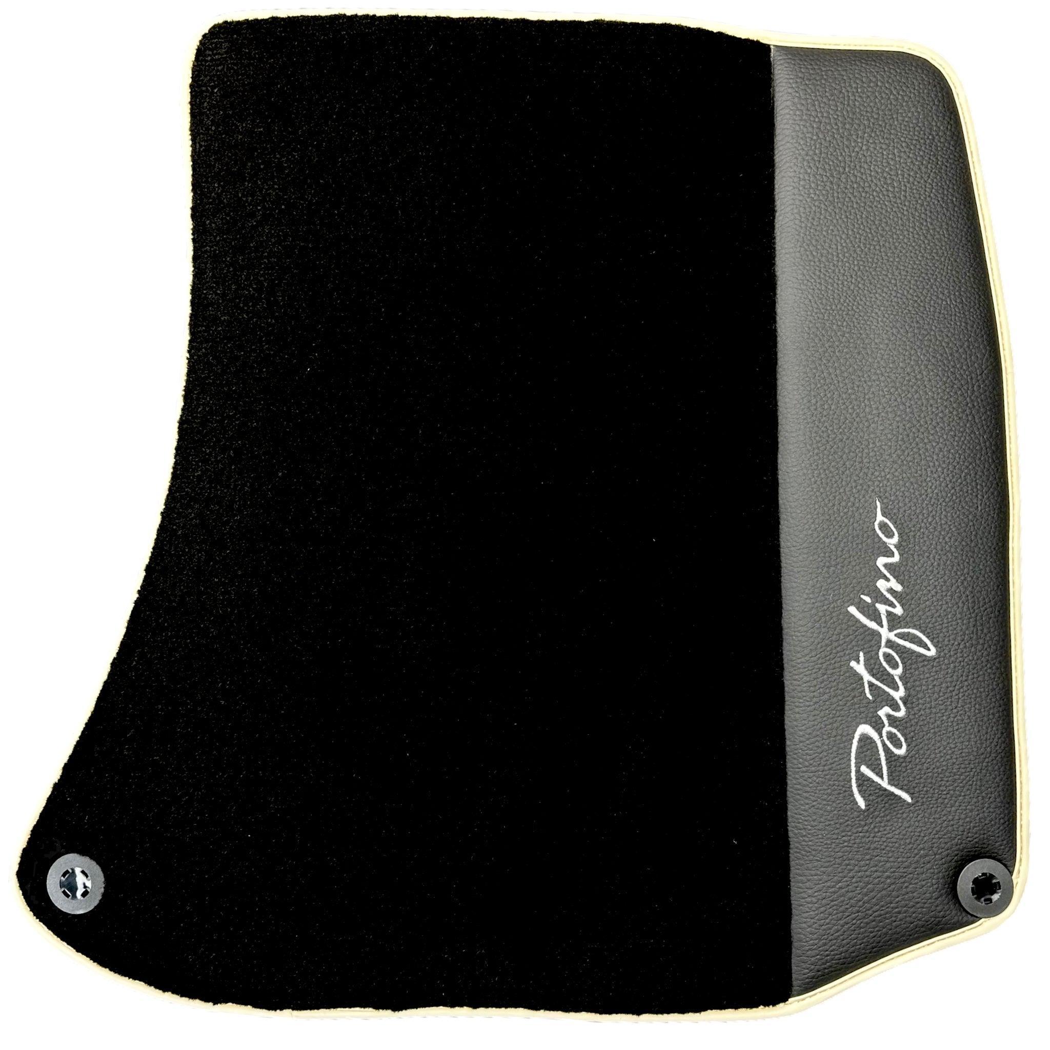 Tapis de voiture noirs pour Ferrari Portofino (2018-2023) avec cuir et finitions beiges