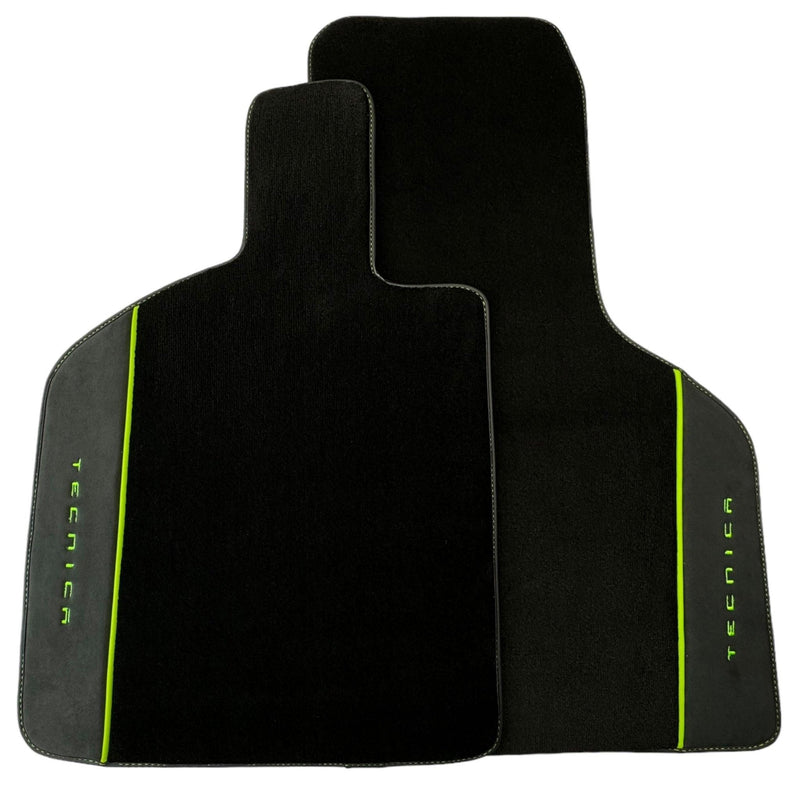 Schwarze Fußmatten für Lamborghini Huracan Tecnica mit Alcantara-Leder | Green Edition