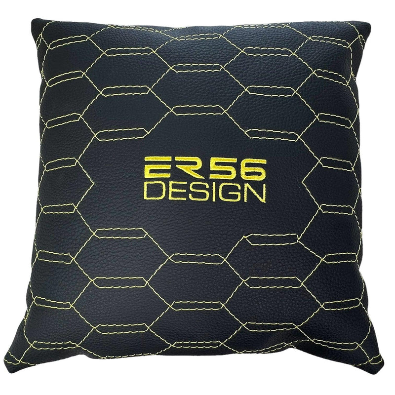 Schwarze Lederkissen ER56 Design, 2er-Set, gelbe Nähte