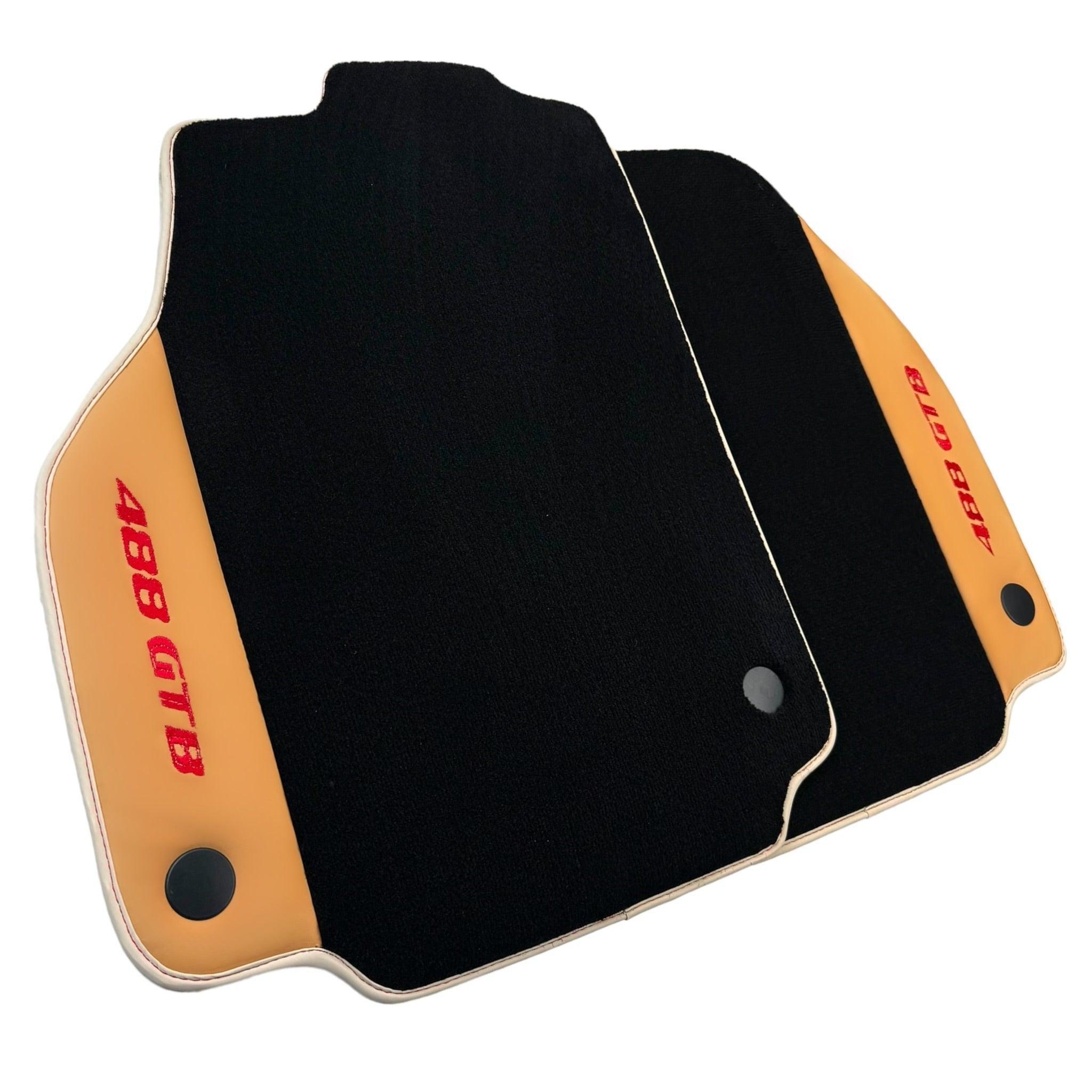 Black Floor Mats For Ferrari 488 GTB (2015-2022) with Beige Nappa Leather