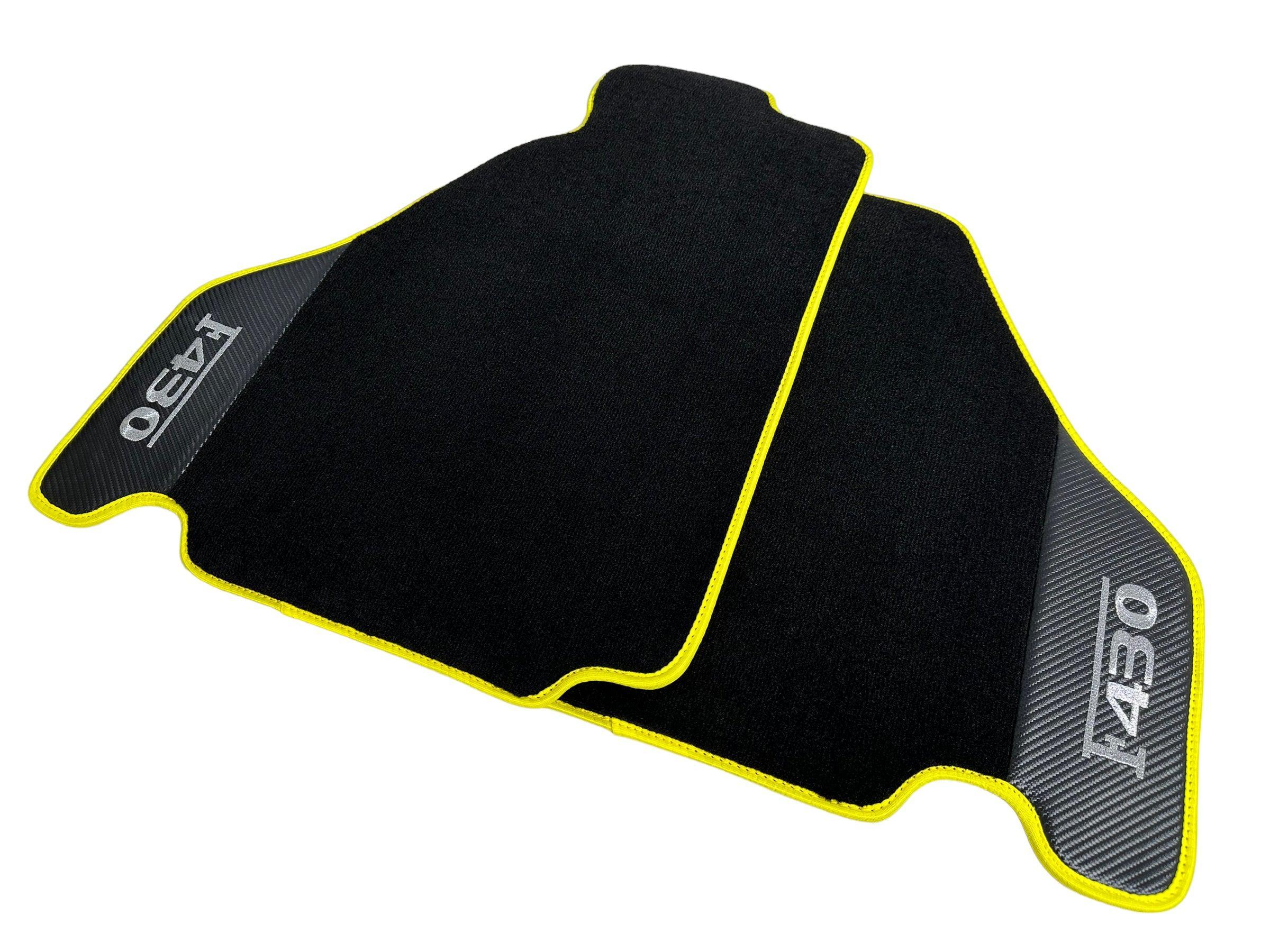 Black Floor Mats For Ferrari F430 2004-2009 With Carbon Fiber Leather Yellow Trim