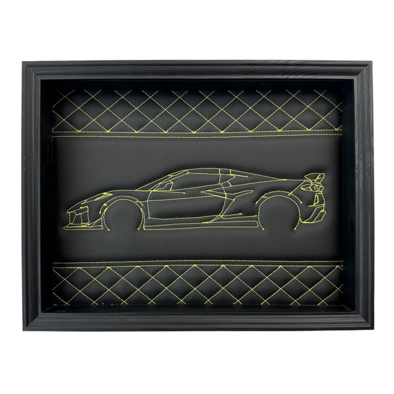 Arte de Pared de Cuero Negro Inspirado en Corvette C8: