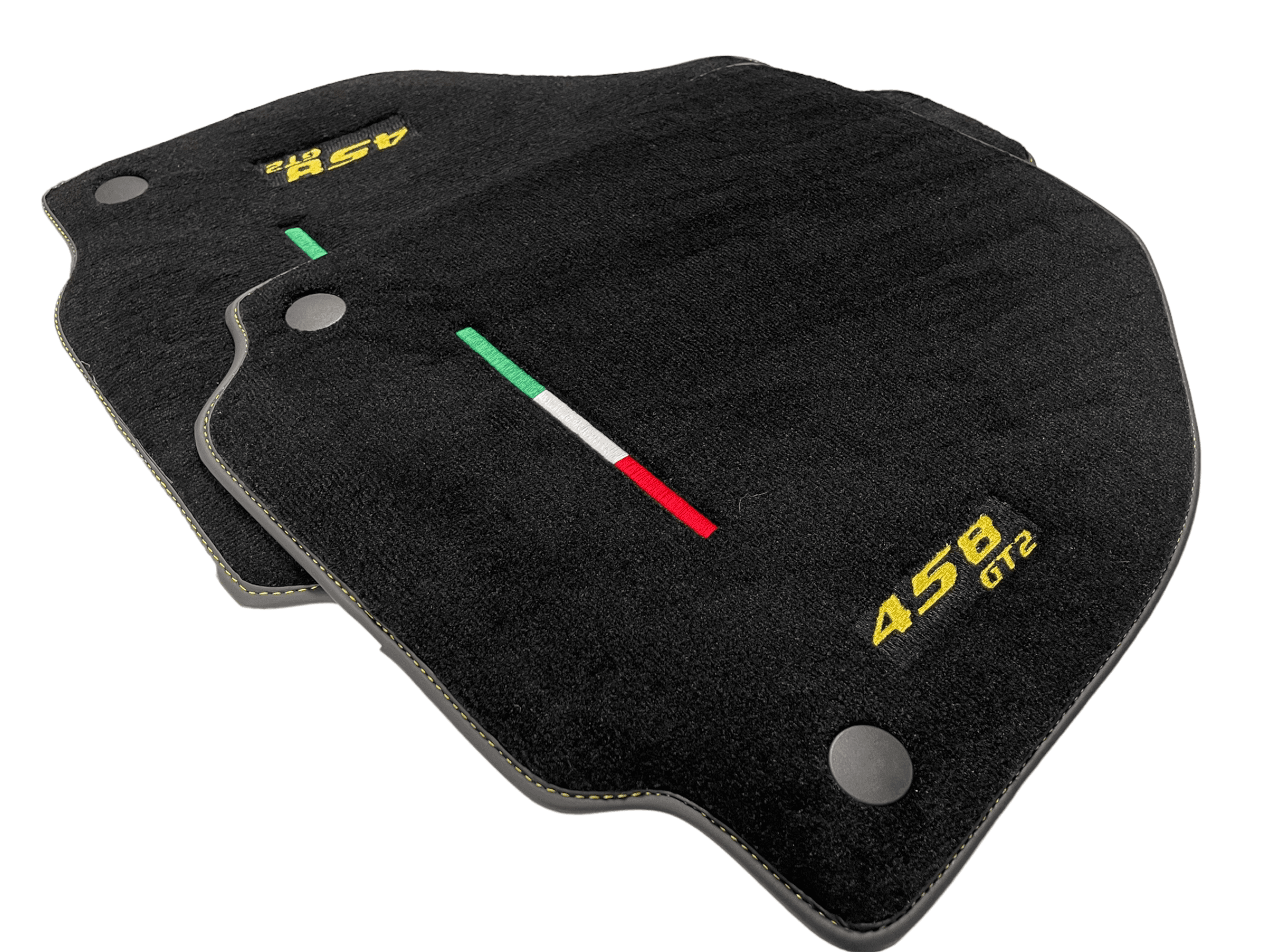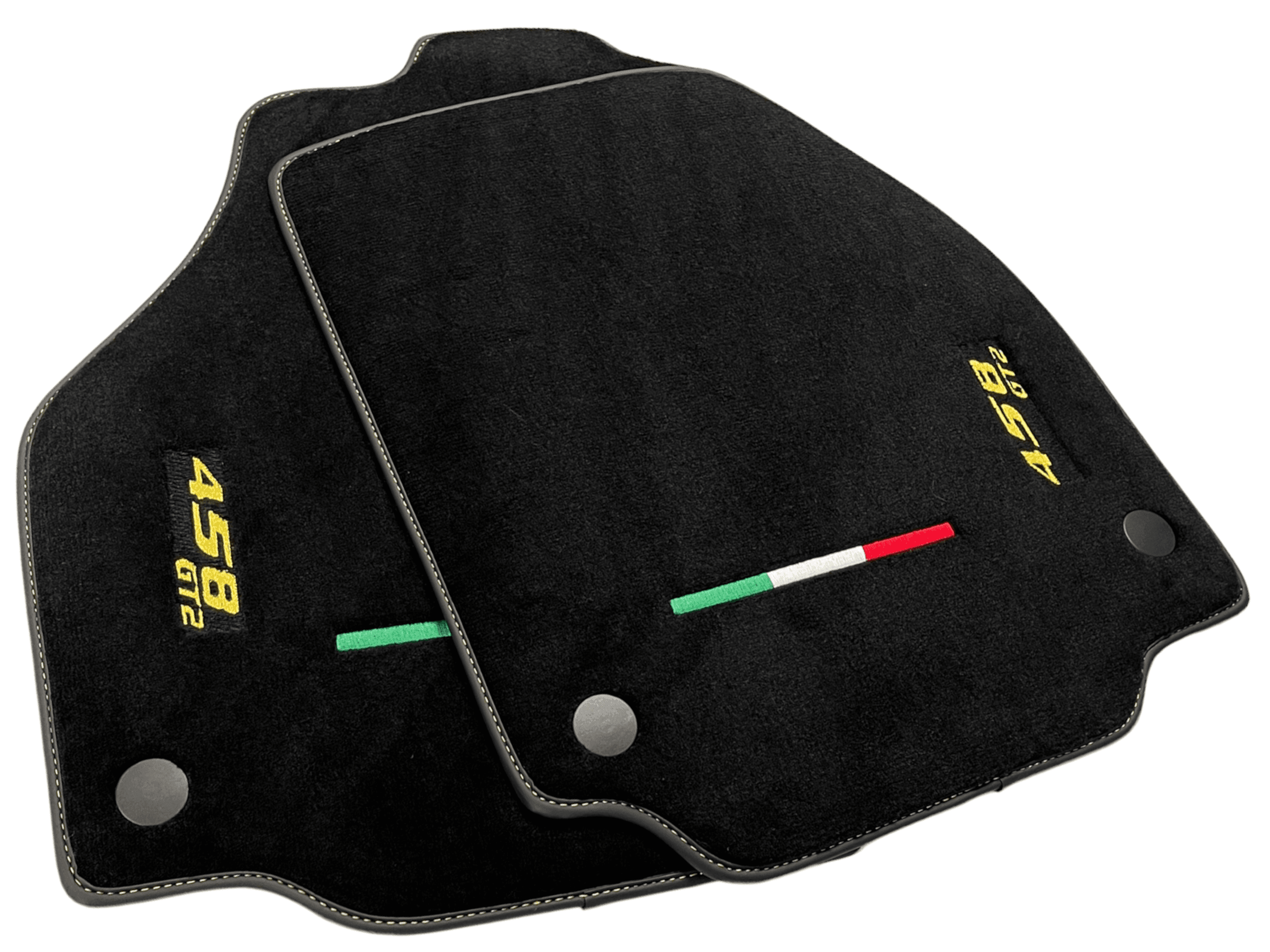 Tappetini neri per auto Ferrari 458 GT2 2012-2015 con cuciture gialle