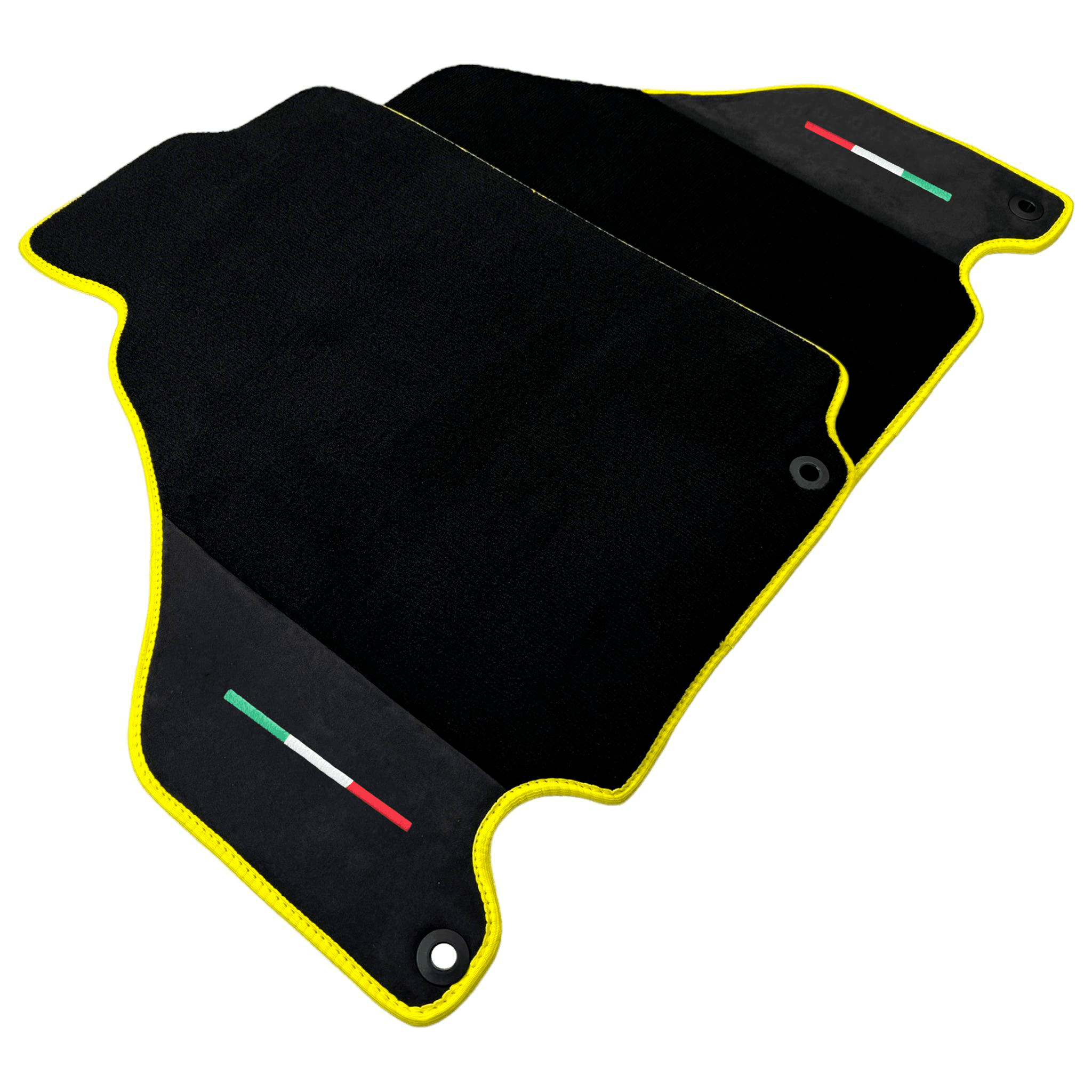 Tapis de voiture noirs pour Ferrari 360 Spider avec cuir Alcantara | Bord jaune