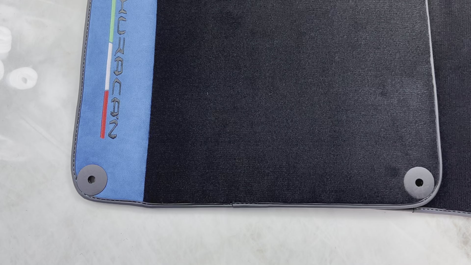 Tapis de voiture noir pour Lamborghini Huracan 2014-2023 avec cuir Alcantara bleu